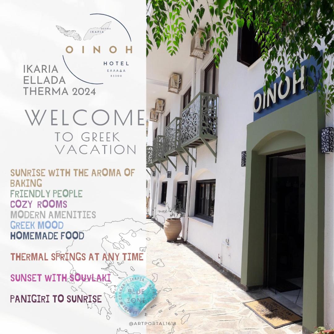 Oinoi Hotel has a garden, shared lounge, a terrace and bar in Agios Kirykos. With free WiFi, this 2-star hotel offers a shared kitchen and room service. The property is non-smoking and is situated 200 metres from Therma Beach.