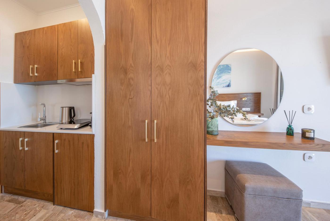 Deluxe Double Room with Balcony and Sea View. The well-fitted kitchenette has a stovetop, a refrigerator, kitchenware and an electric kettle. This air-conditioned double room is comprised of a flat-screen TV with satellite channels, a private bathroom as well as a balcony with sea views. The unit has 1 bed. ;