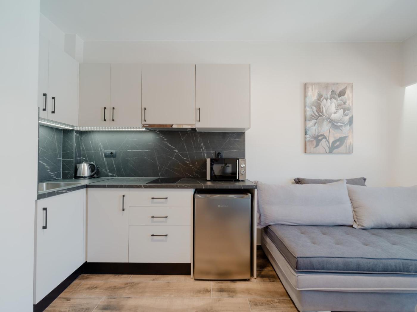 Standard Apartment. Boasting a private entrance, this air-conditioned apartment comes with 1 living room, 1 separate bedroom and 1 bathroom with a shower and a hairdryer. In the well-fitted kitchenette, guests will find a stovetop, a refrigerator, kitchenware and a microwave. The apartment has tiled floors, a seating area with a flat-screen TV, soundproof walls, a tea and coffee maker as well as garden views. The unit has 2 beds. ;