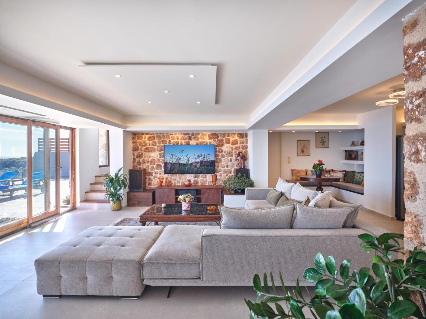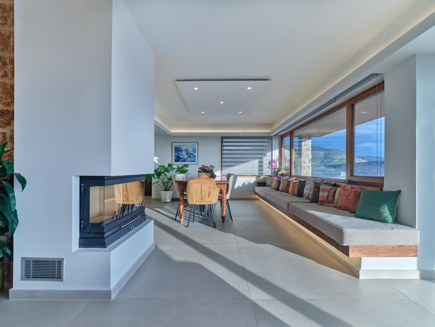 Villa. The pool with a view and fireplace are the special features of this villa. Guests will find a refrigerator, a dishwasher, kitchenware and an oven in the well-equipped kitchen. The villa also includes a barbecue. The spacious air-conditioned villa features a flat-screen TV with streaming services, a washing machine, a private entrance, soundproof walls as well as sea views. The unit has 6 beds.