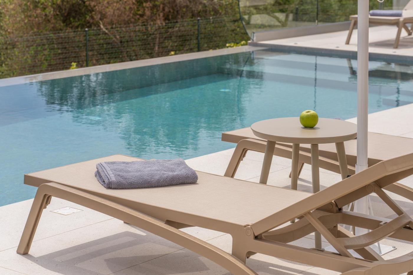 Three-Bedroom Villa. This luxurious villa features a pool with a view, a hot tub and a spa bath. Guests will find a stovetop, a refrigerator, a dishwasher and kitchenware in the kitchen. The villa also provides guests with a barbecue. The air-conditioned villa provides a flat-screen TV, a washing machine, a private entrance, soundproof walls as well as sea views. The unit offers 5 beds.