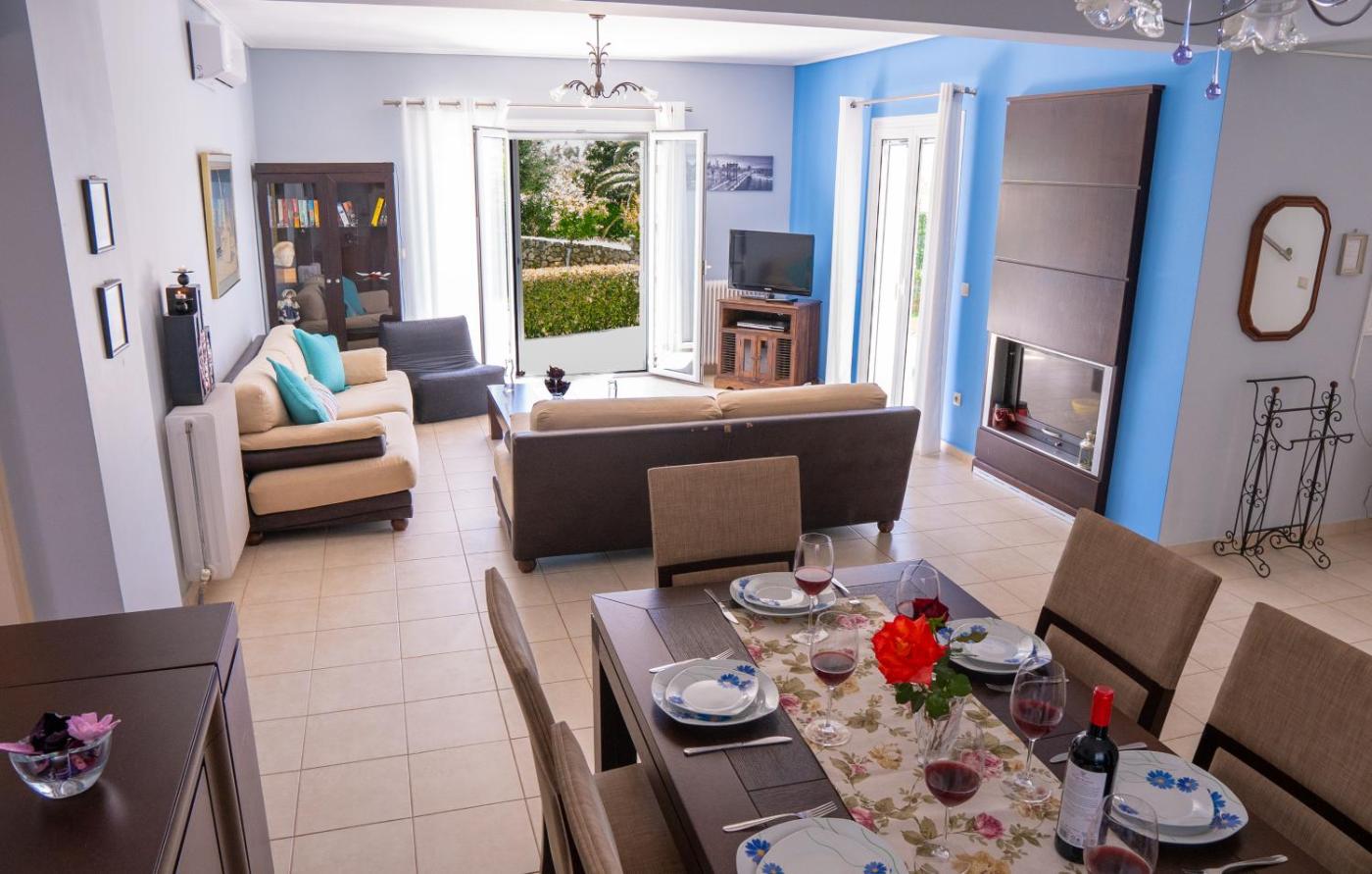The villa comes with 3 bedrooms, 2 bathrooms, bed linen, towels, a flat-screen TV with satellite channels, a dining area, a fully equipped kitchen, and a terrace with sea views. The comfortable, air-conditioned accommodation also comes with soundproofing and a fireplace. The property has an outdoor dining area.