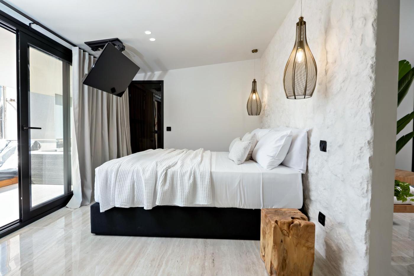 One-Bedroom Apartment. The hot tub and spa bath are the standout features of this apartment. This apartment features 1 living room, 1 separate bedroom and 1 bathroom with a shower and free toiletries. The fully equipped kitchen has a stovetop, a refrigerator, kitchenware and an oven. The air-conditioned apartment features a flat-screen TV with streaming services, a washing machine, soundproof walls, a coffee machine as well as sea views. The unit has 3 beds.