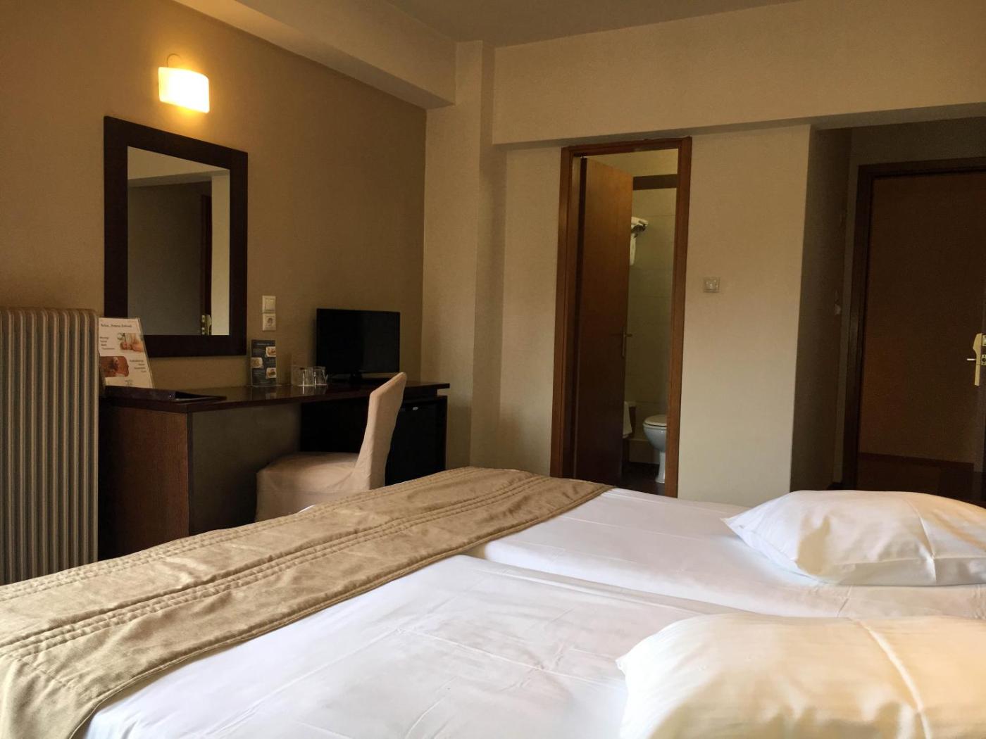 Μοdern Double orTwin Room with Mountain View. Enjoying mountain views, the air-conditioned room is decorated with soft colors and modern furnishings. It is located in the new wing of the property and offers double gazed windows, satellite TV and a mini bar. Free WiFi is provided. ;