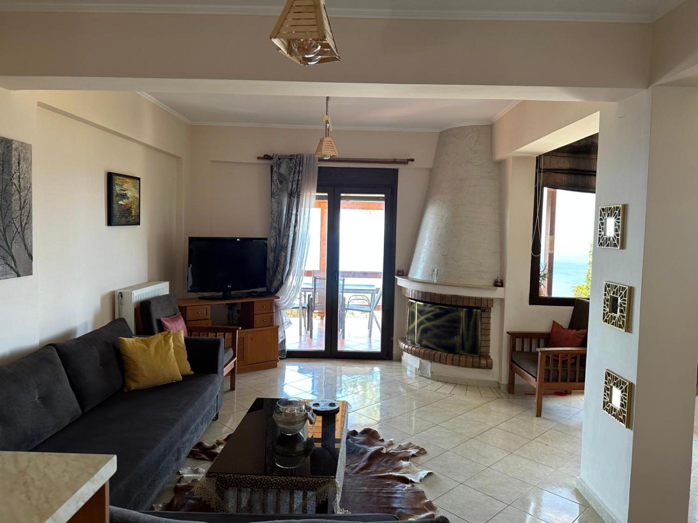 Two-Bedroom Apartment. This apartments standout feature is the fireplace. Boasting a private entrance, this spacious apartment also includes 1 living room, 2 separate bedrooms and 2 bathrooms with a bath. In the well-fitted kitchen, guests will find a stovetop, a refrigerator, kitchenware and an oven. The air-conditioned apartment offers a flat-screen TV with streaming services, a washing machine, soundproof walls, a tea and coffee maker as well as sea views. The unit has 4 beds.