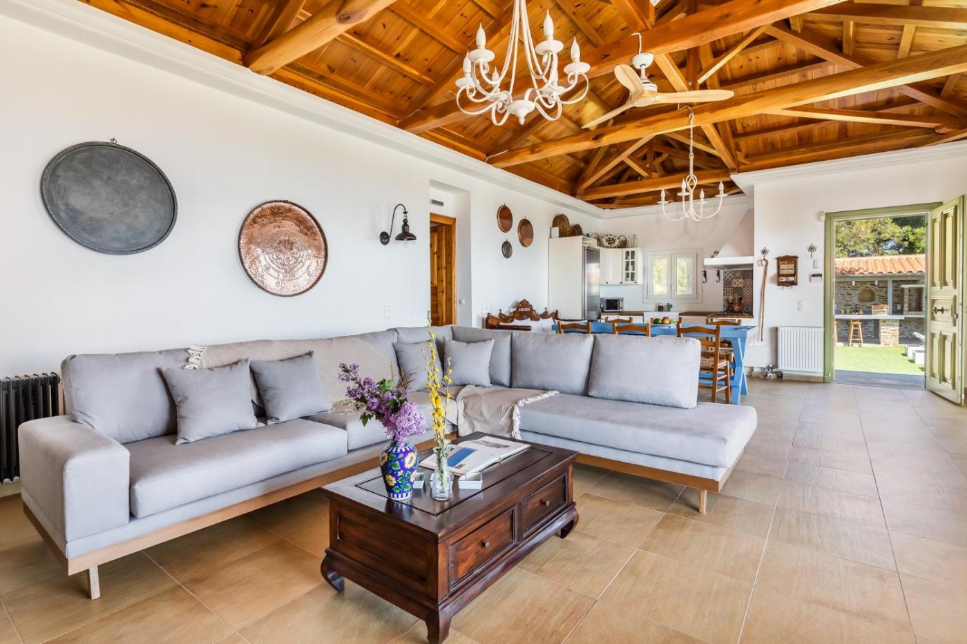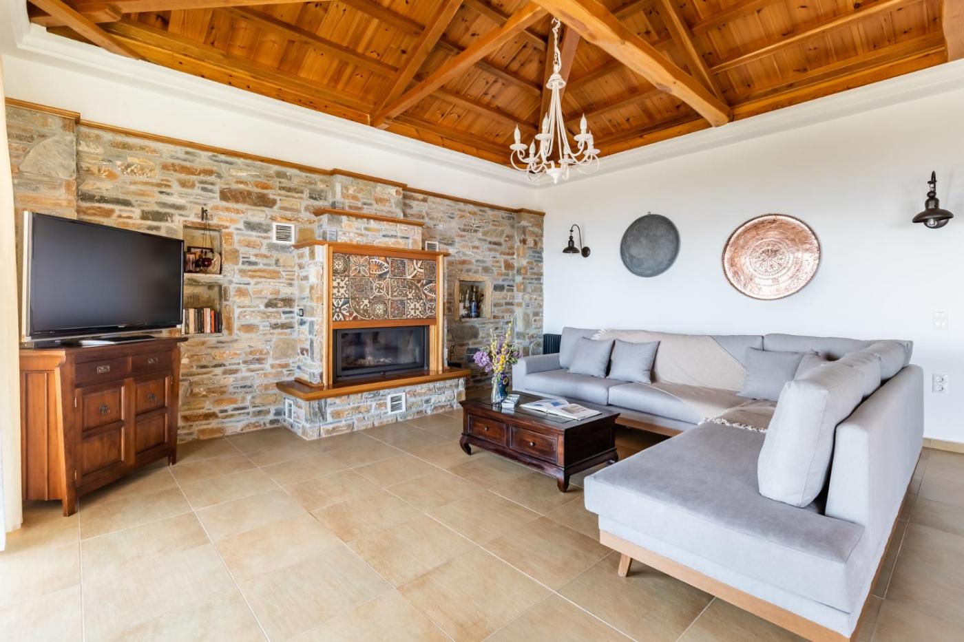 Three-Bedroom Villa. This villa features a fireplace. Boasting a private entrance, this air-conditioned villa features a kitchen, 3 bedrooms and 2 bathrooms with a shower and a hairdryer. The well-fitted kitchen has a stovetop, a refrigerator, kitchenware and an oven. Featuring a terrace with sea views, this villa also features a washing machine and a flat-screen TV. The unit has 3 beds.