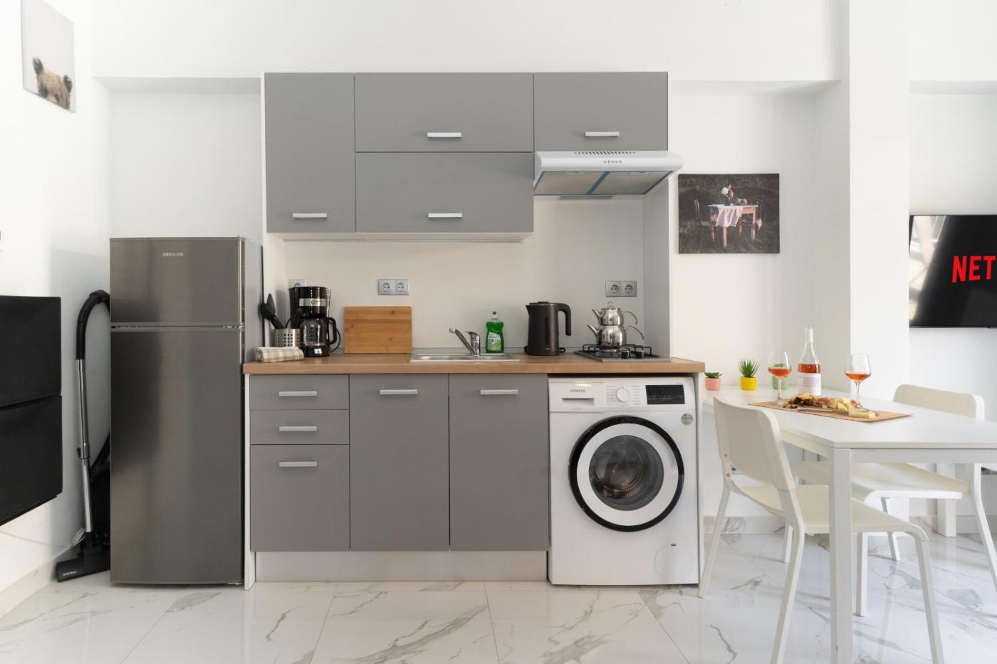Family Room with Bathroom. Providing free toiletries and bathrobes, this family room includes a private bathroom with a shower and a hairdryer. The well-fitted kitchen has a stovetop, a refrigerator, kitchenware and an oven. This family room is air-conditioned and features a seating area with a flat-screen TV, a washing machine, a private entrance, a tea and coffee maker, as well as a sofa. The unit offers 2 beds.